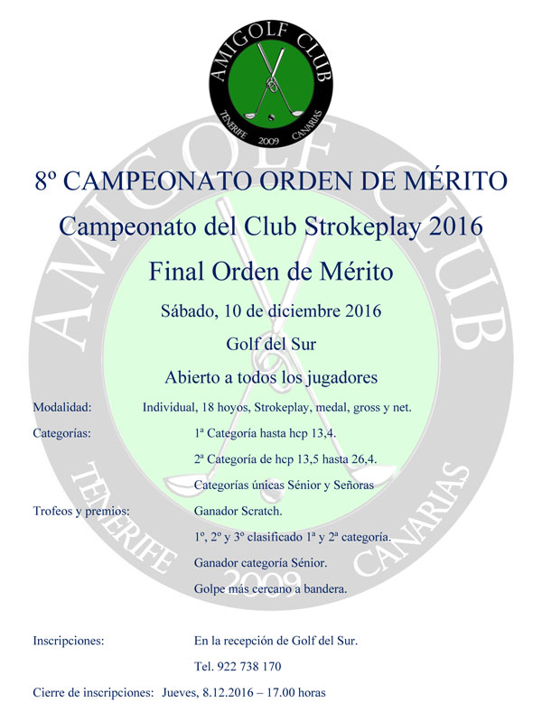 10 DICIEMBRE 2016. 8º TORNEO AMIGOLF FINAL ORDEN DE MERITO