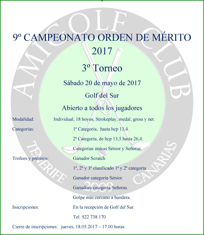 PARTICIPANTES: Torneo abierto a todos los jugadores amateur que estén en posesión de la correspondiente licencia federativa española en vigor o jugadores extranjeros con presentación de la licencia de la federación de sus respectivos países y certificado de hándicap. Los jugadores no socios del Club Deportivo Amigolf participan con opción a premios, pero no pueden puntuar para el Orden de Mérito del Club.